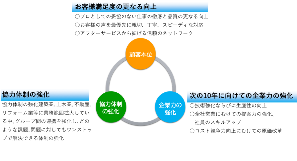 株式会社AXELでは、企業理念を具現化する為に、建築のプロフェッショナル集団として常に技術の研鑽と企業として提供できる不可価値の更なる向上をめざし、以下の基本方針に基づき、業務に取り組んでおります。今後も、お客様の建築、不動産に関するありとあらゆるご要望に、地元密着で経験と実績から、最適な解決策を「建築のプロ集団」として、ご提案させていただきます。